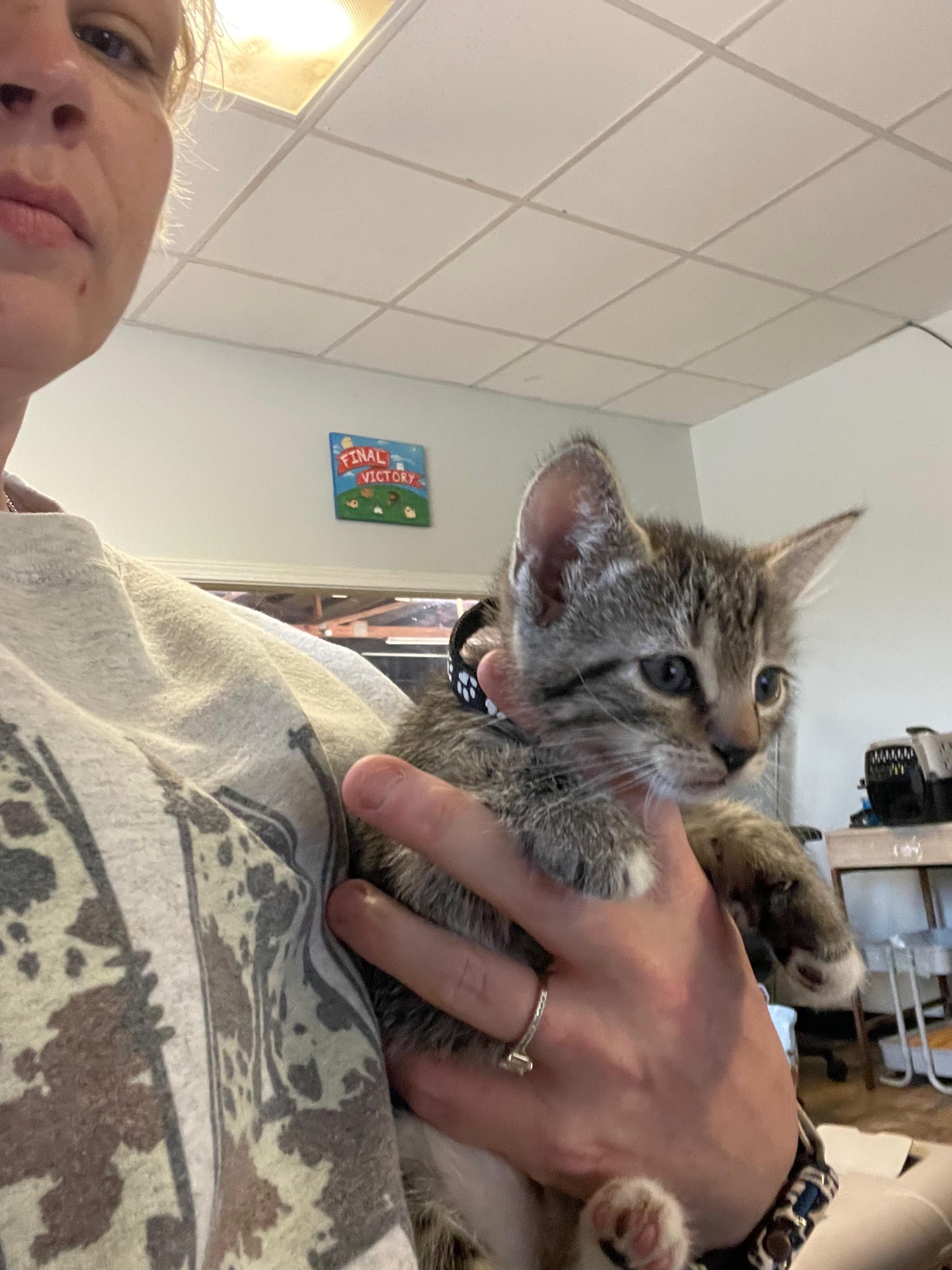 Theodore is a tabby male kitten with spotted leopard like markings #