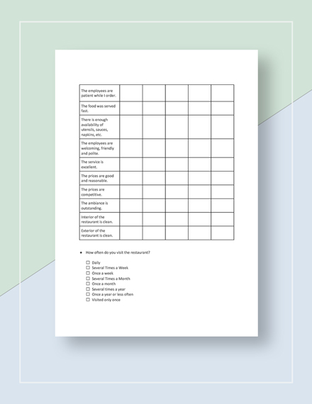 Restaurant Evaluation Survey Template in Google Docs Word Pages
