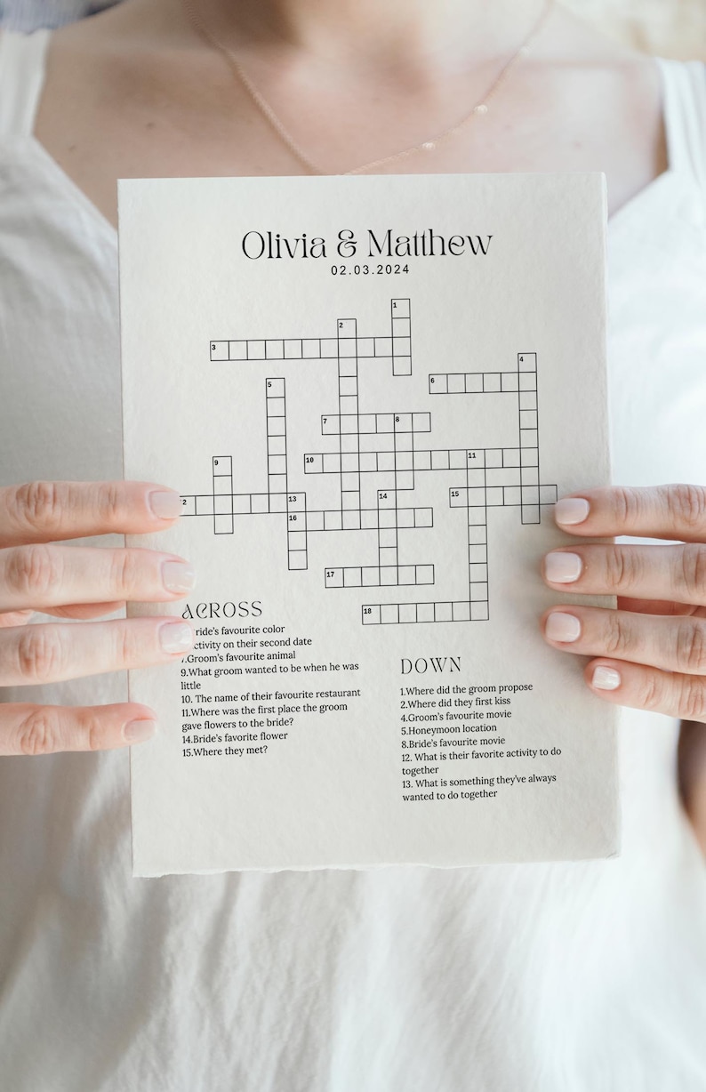 Custom Wedding Crossword Puzzle Minimalist Custom Crossword Puzzle