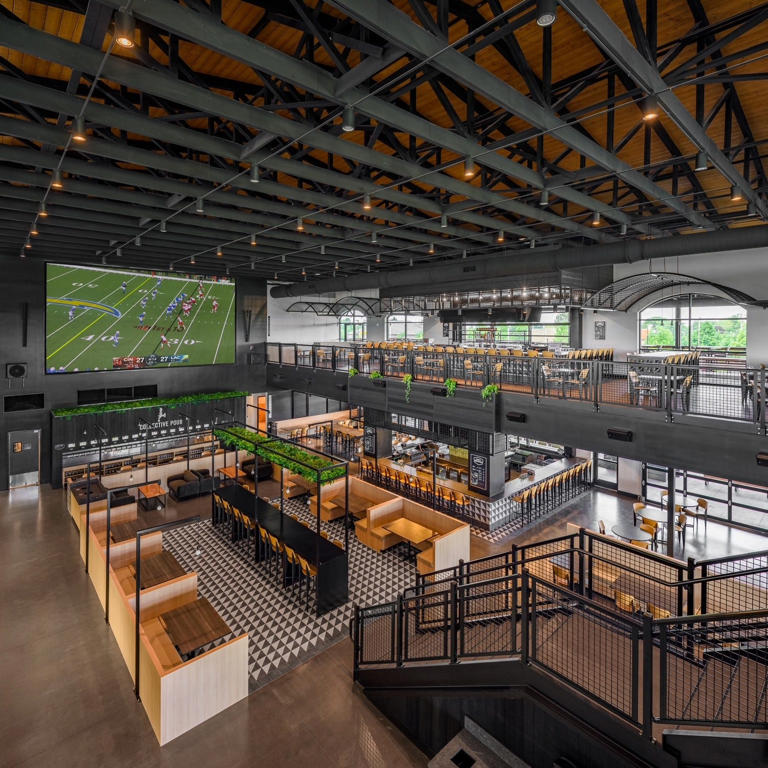 Complex with restaurants bars and sand volleyball opening in Liberty