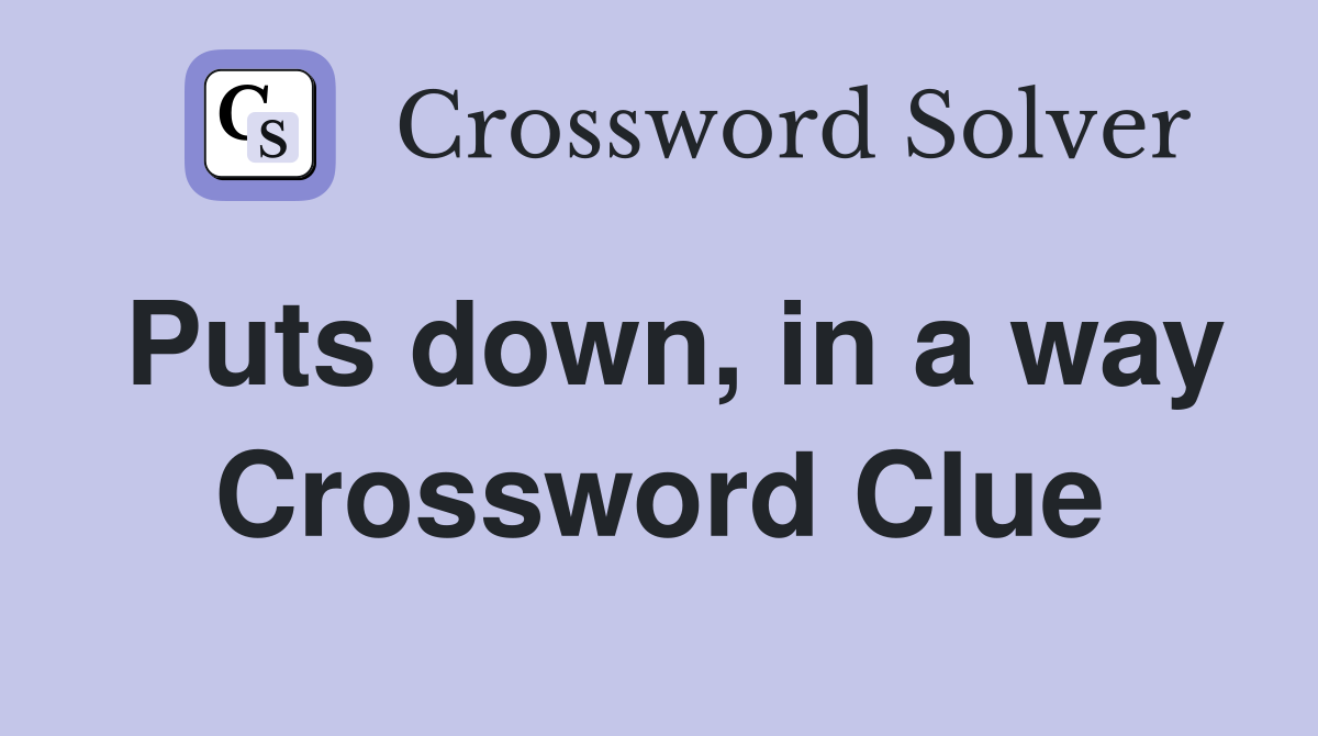 Puts down in a way Crossword Clue Answers Crossword Solver