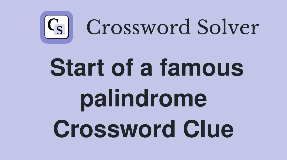 Start of a famous palindrome Crossword Clue Answers Crossword Solver