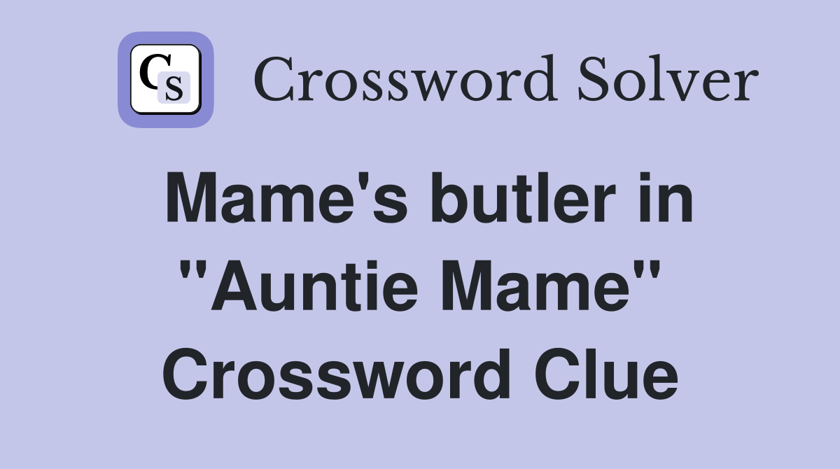 Mame #39 s butler in quot Auntie Mame quot Crossword Clue Answers Crossword Solver