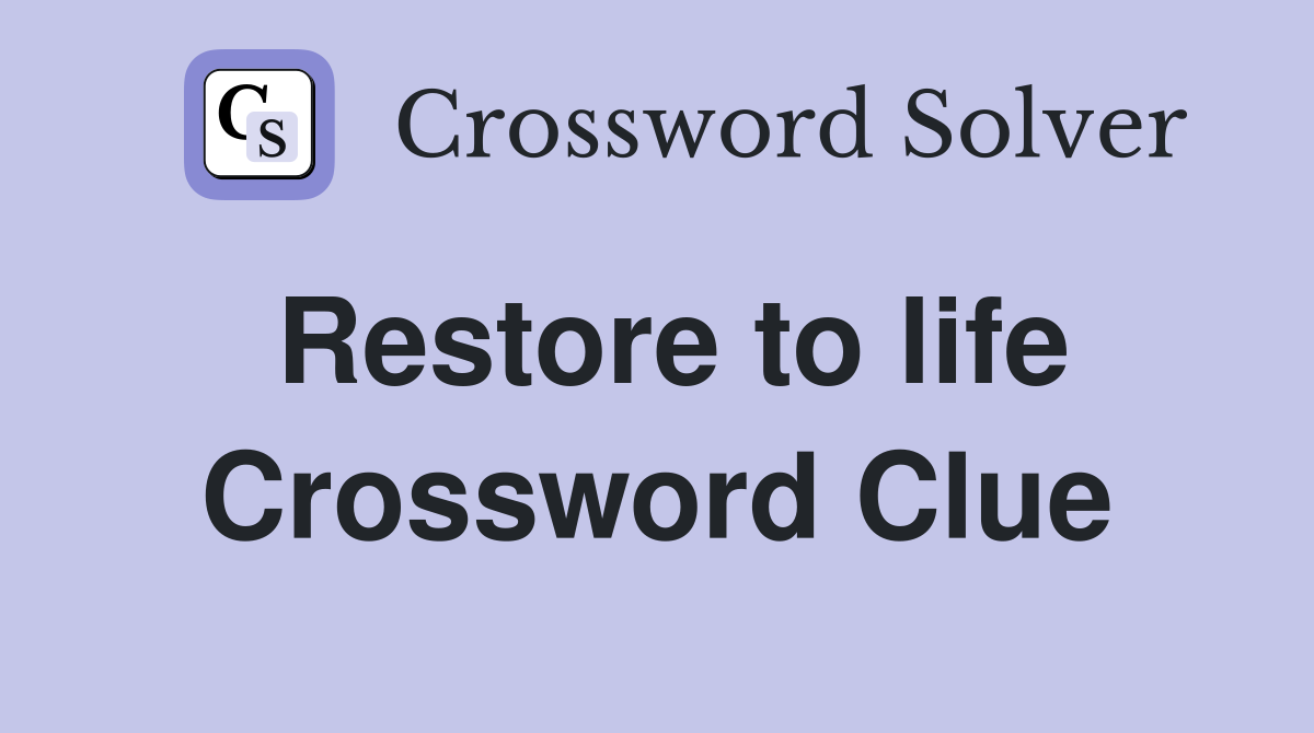 Here are some of the images for Restore To Life Crossword Clue that we found in our website database.