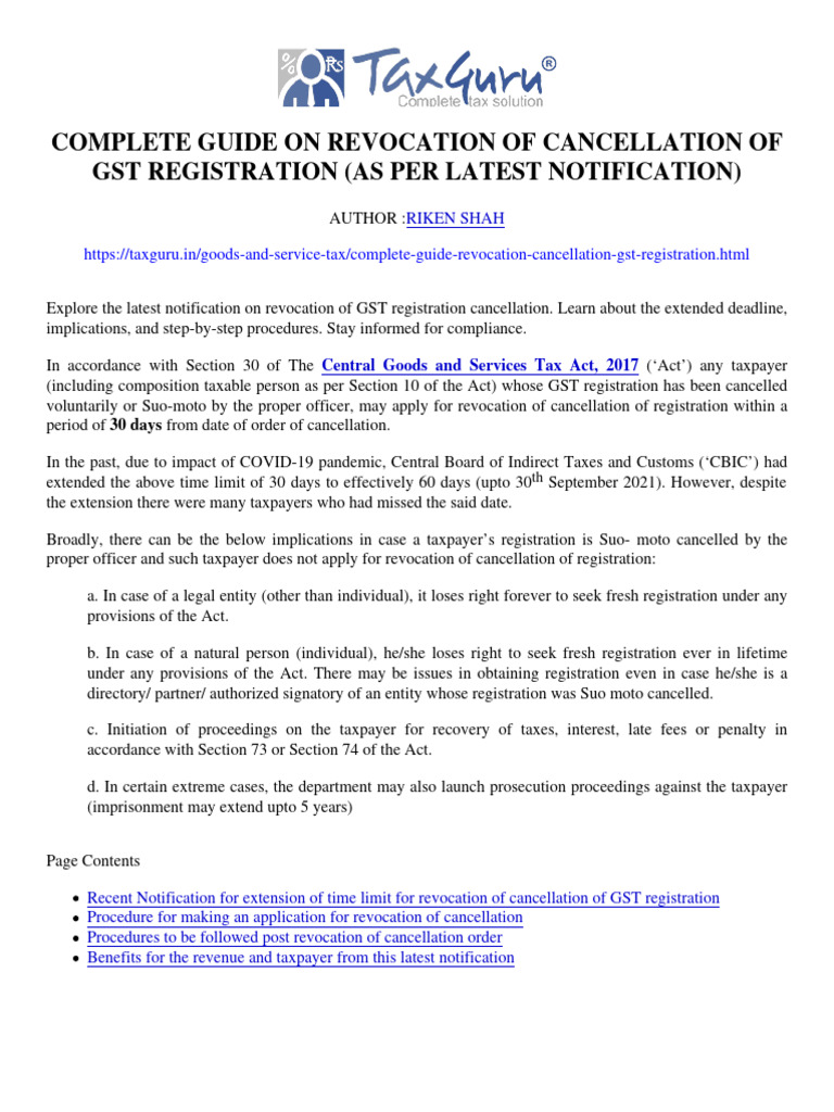 Complete Guide On Revocation of Cancellation of GST Registration (As