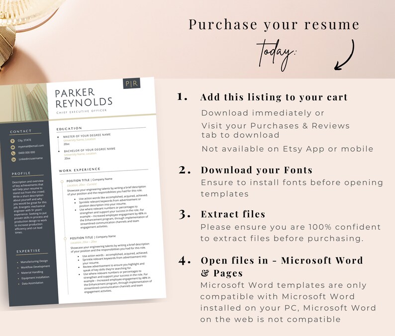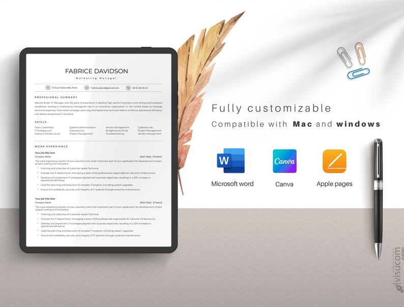 CV Template Canva Apple Pages Microsoft Word Professional Resume