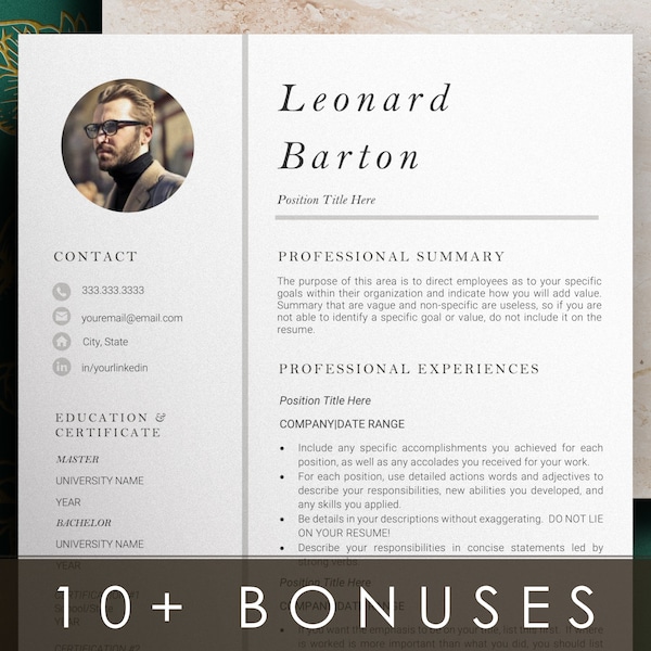 Buy Modern 1 Column Resume Template With Photo Ats Friendly Word Mac