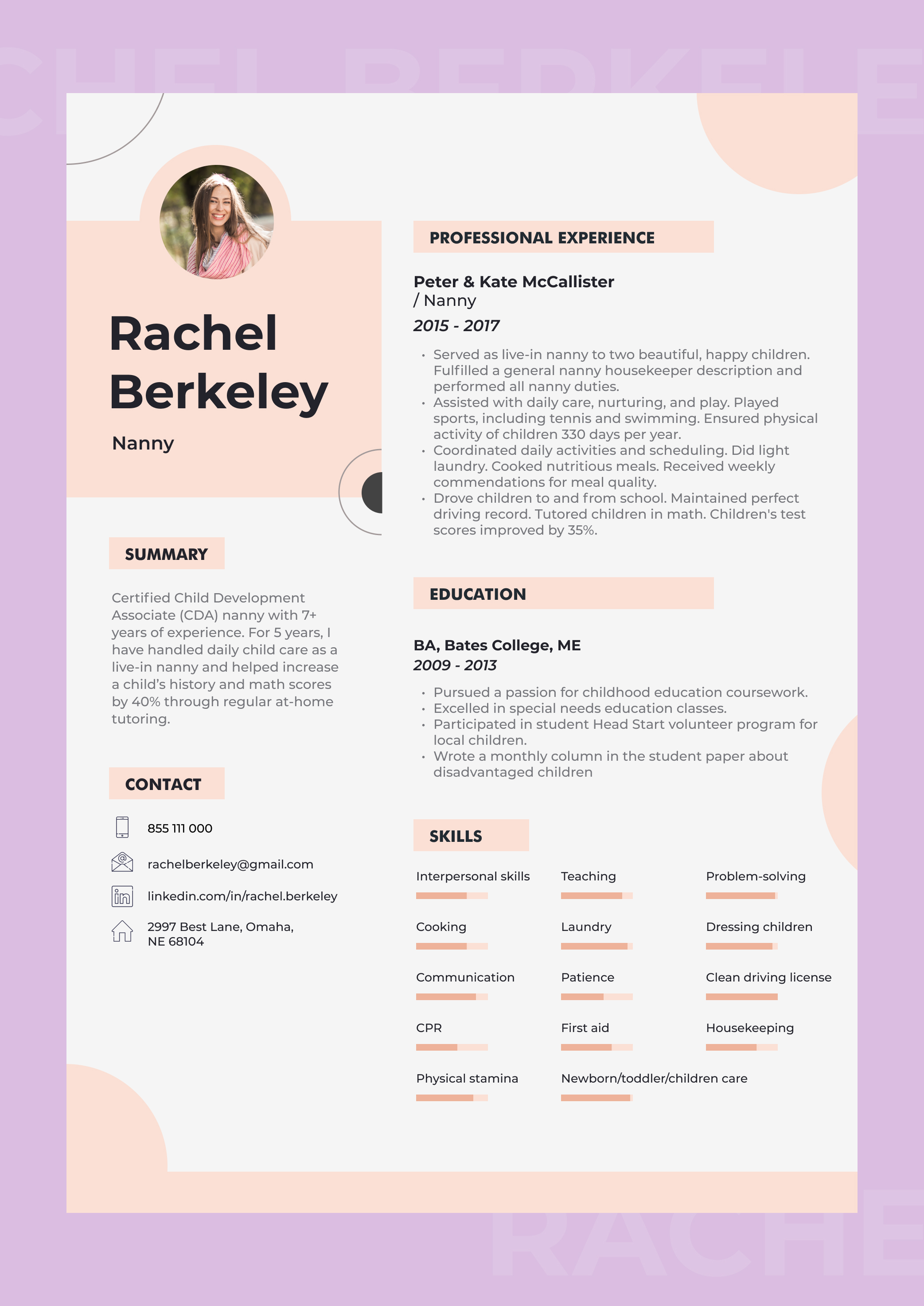 Nanny Resume Templates and Examples for 2024 ResumeTemplates com