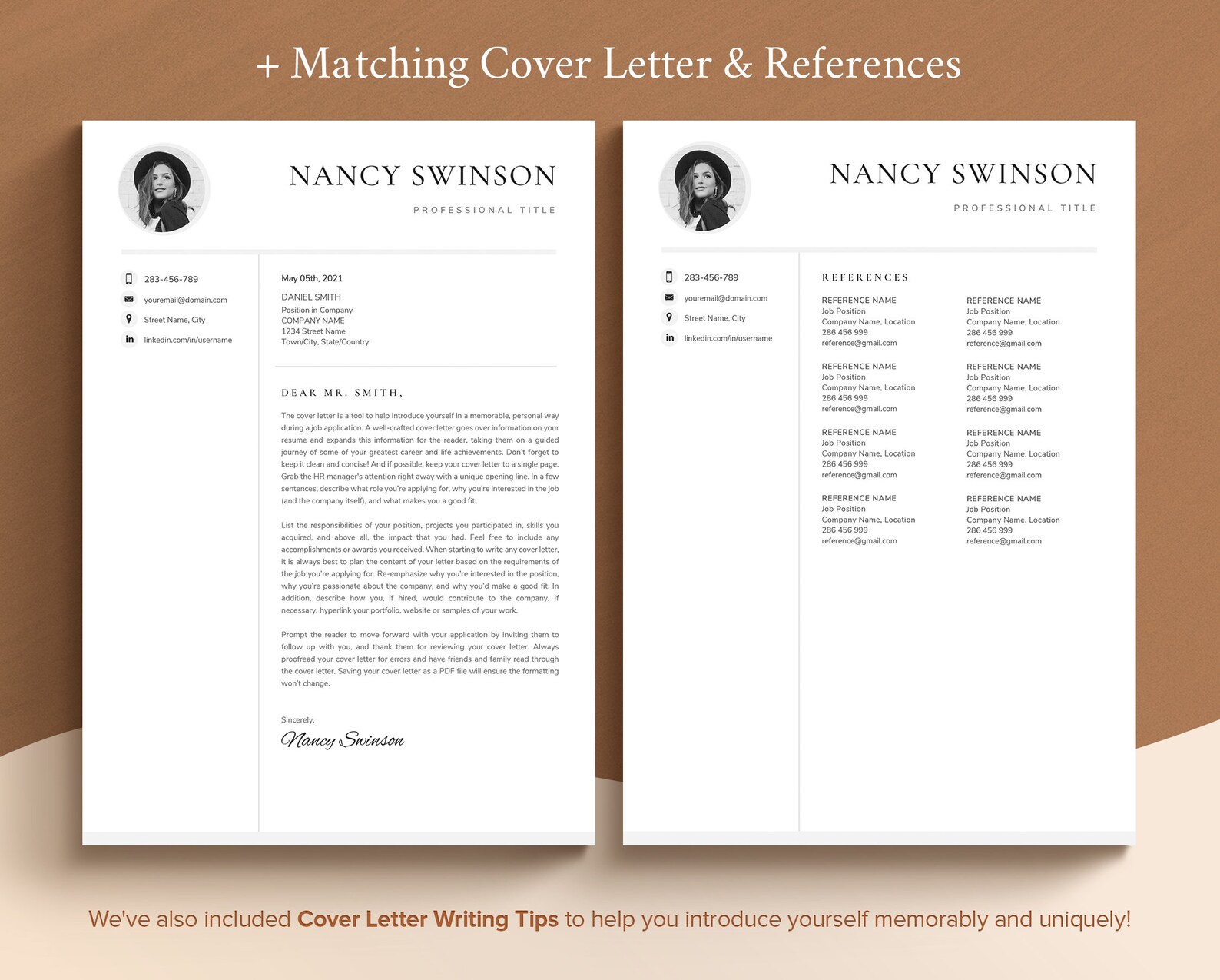 Minimalist Resume Template with Editable Cover Letter and Headshot Photo