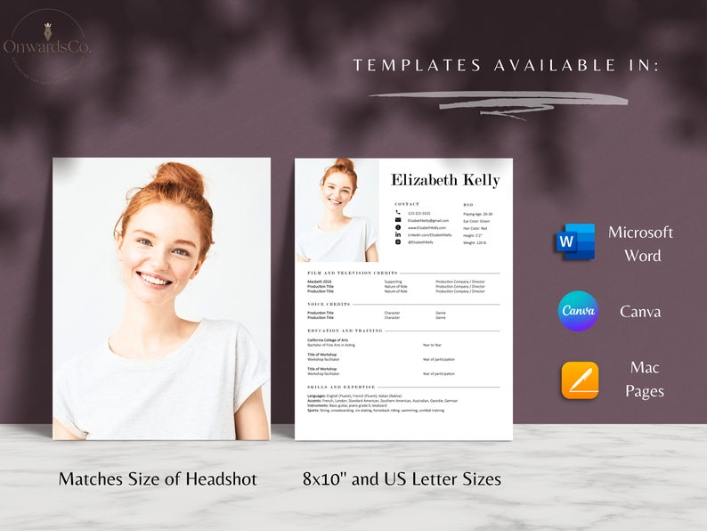 Actor Resume Template Headshot Cover Letter 8x10 for Microsoft