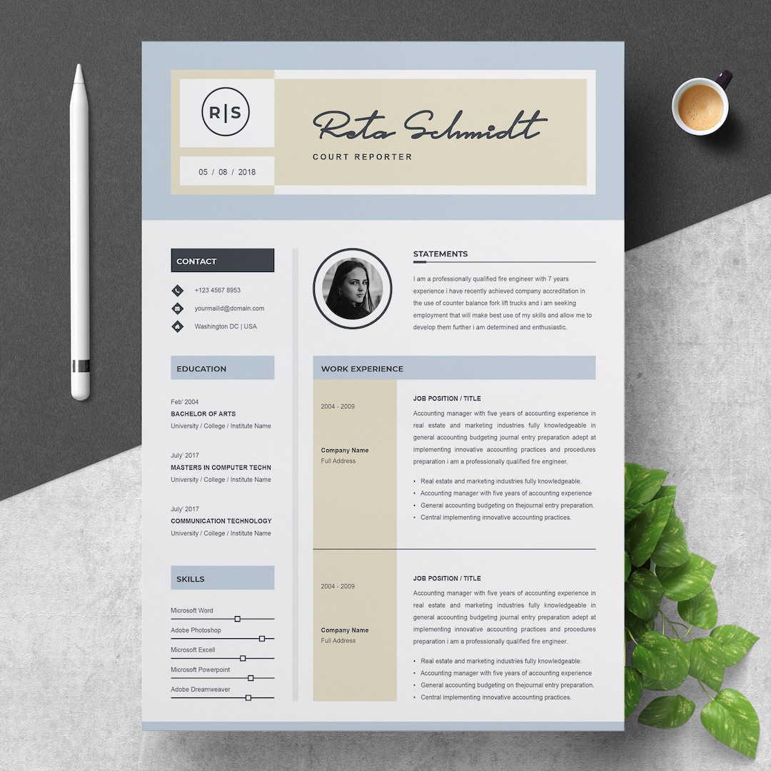 Resume Template Resume Template Word Resume With Photo Etsy Israel