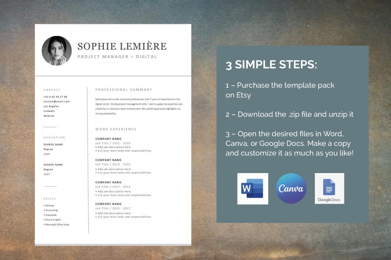Modern Ats friendly Resume Template Pack Editable in Word Canva