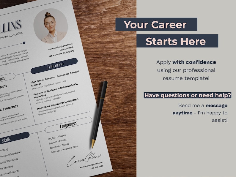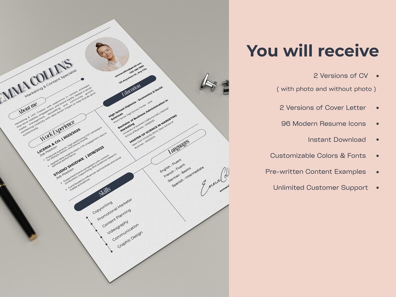 ATS Resume Template Canva: Modern CV Design With Cover Letter (digital