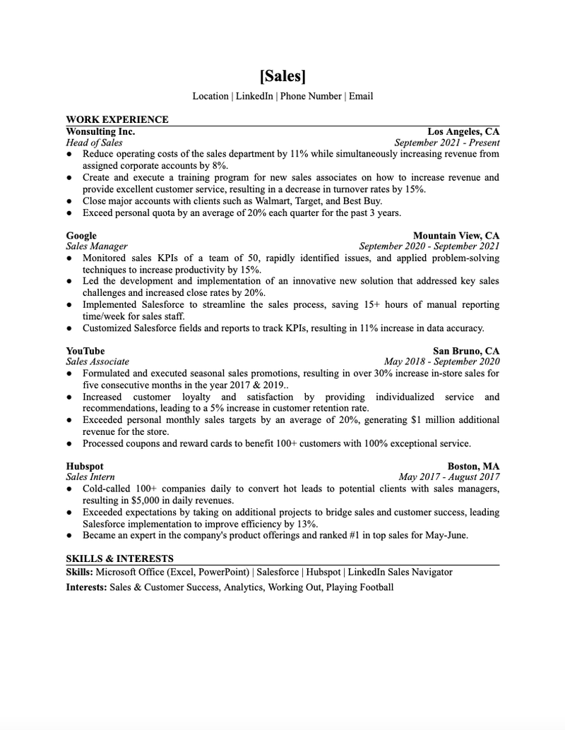 Wonsulting Sales Resume Template