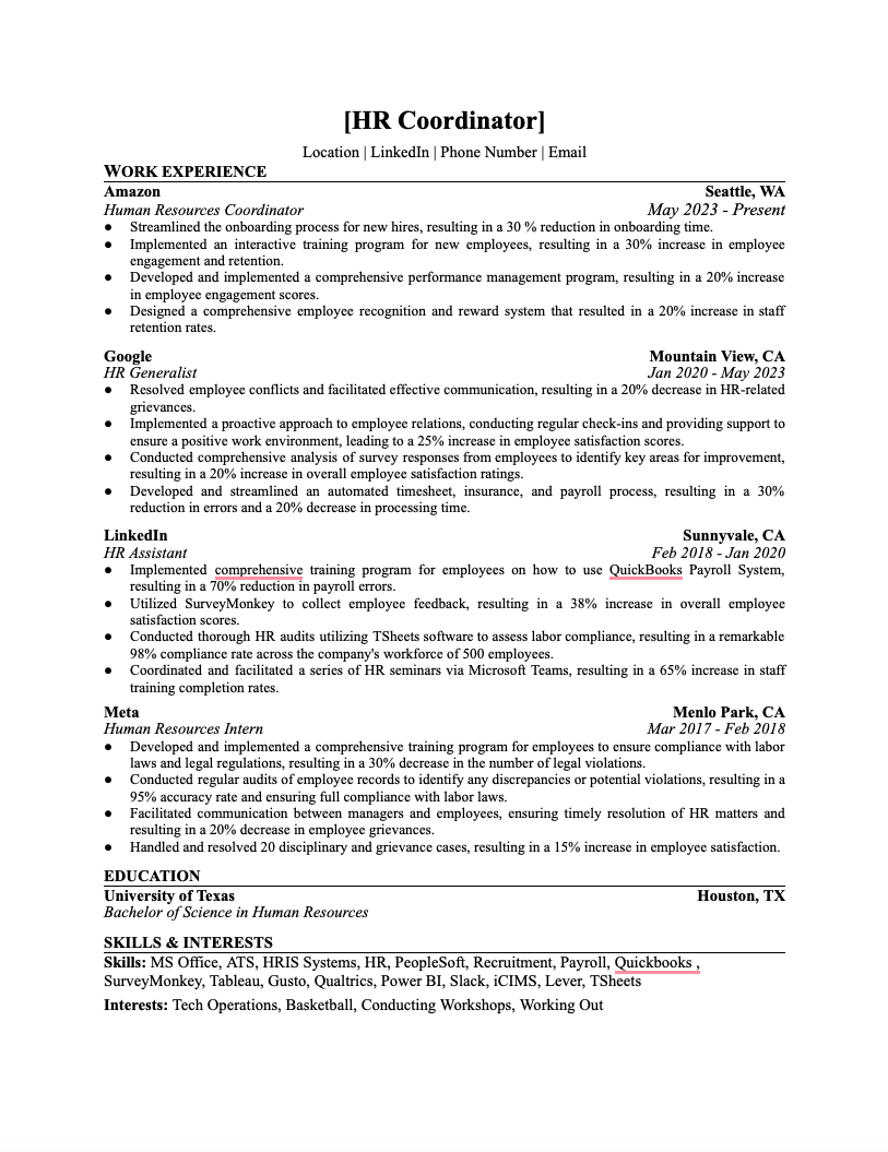 Wonsulting HR Coordinator Resume Template