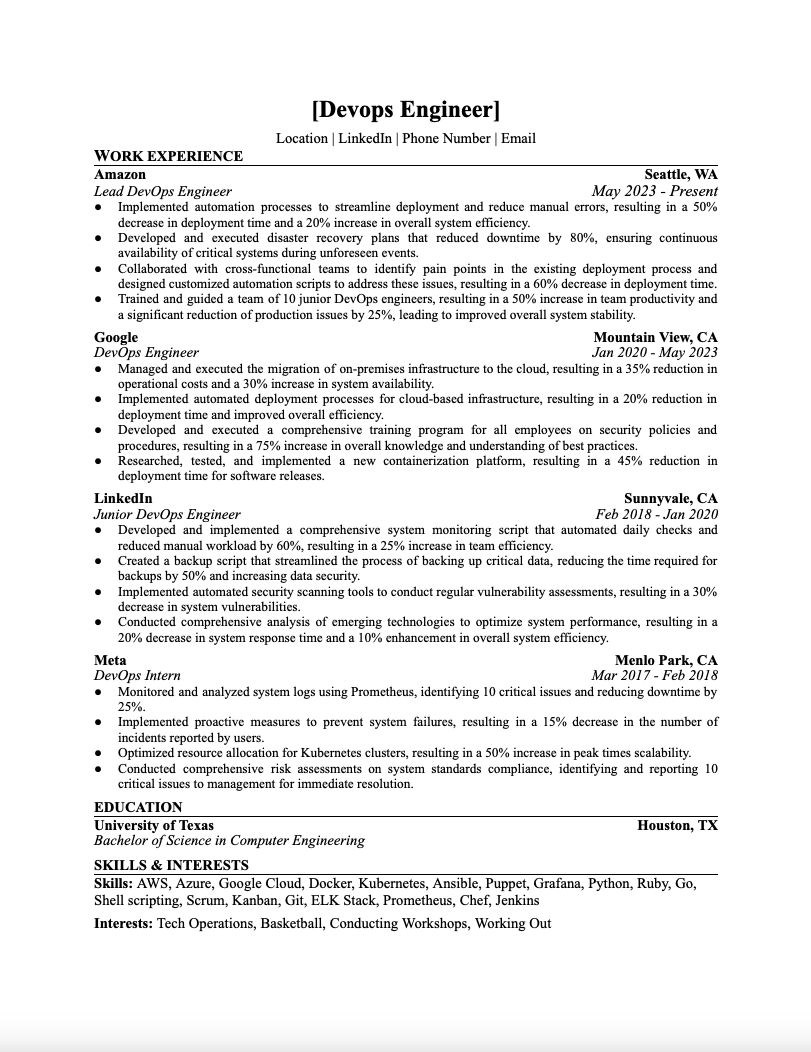 (MAKE A COPY) Wonsulting Resume Template Resources Download Free