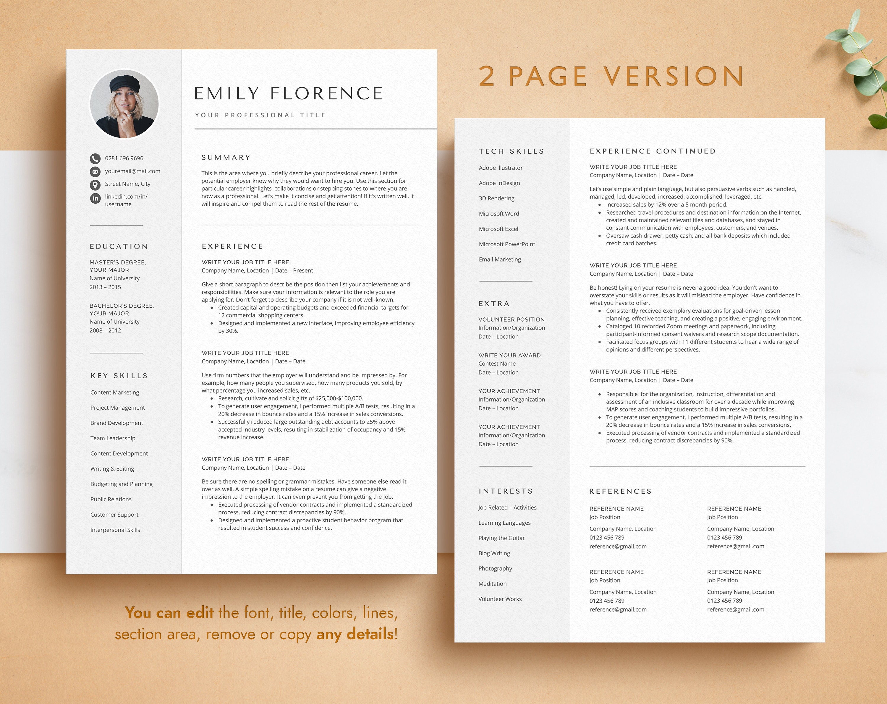 Resume Template 2 Columns Cover Letter References Template Resume