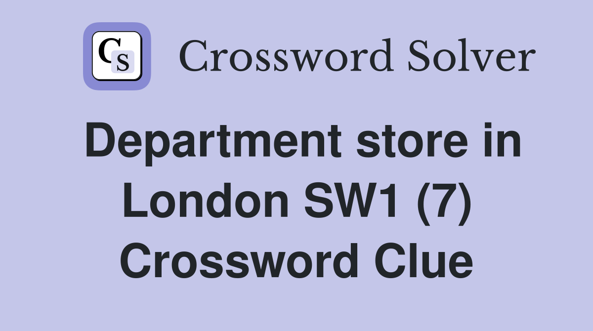 Department store in London SW1 (7) Crossword Clue Answers Crossword