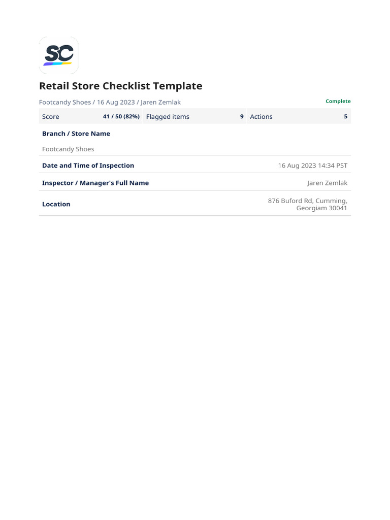 Free Retail Store Audit Checklists PDF SafetyCulture
