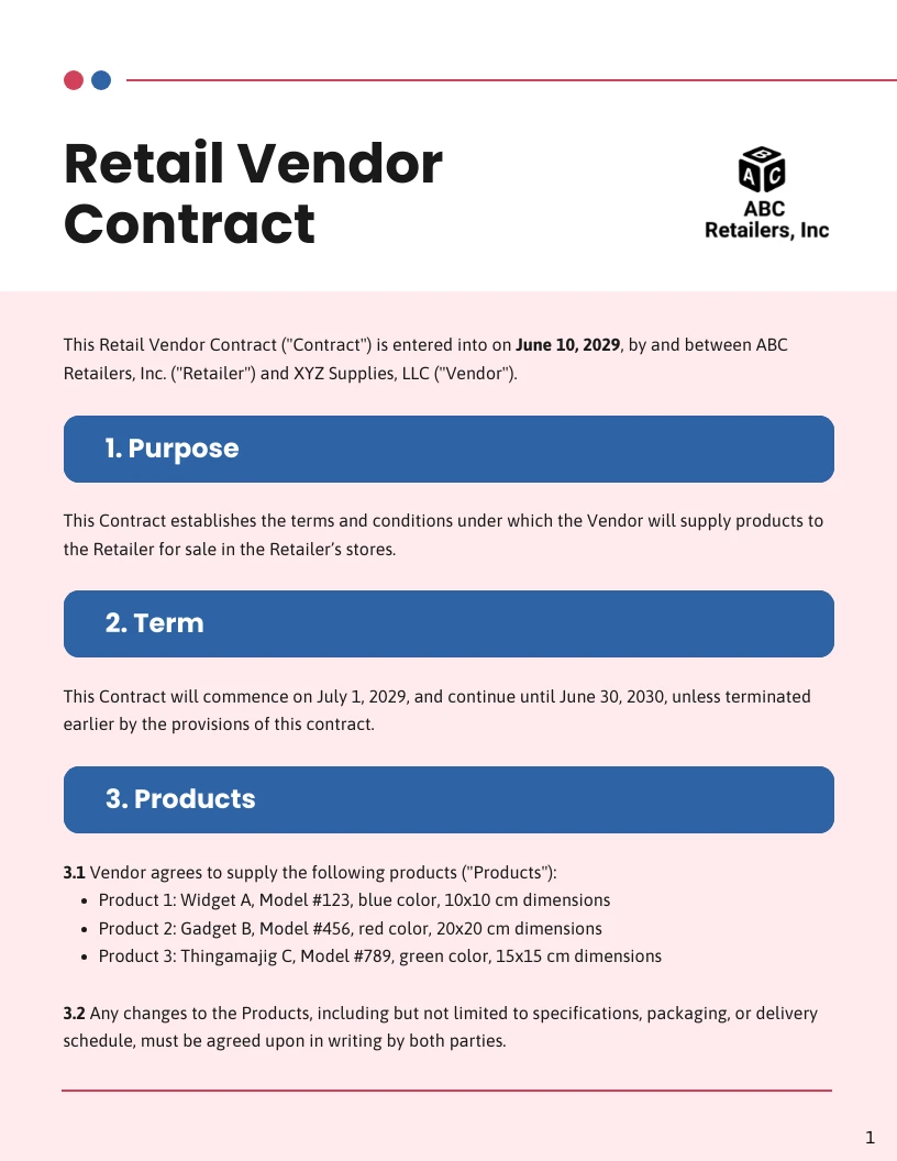 Here are some of the images for Retail Vendor Contract Template that we found in our website database.