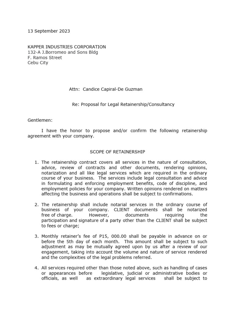 Retainer Proposal PDF Lawyer Conflict Of Interest