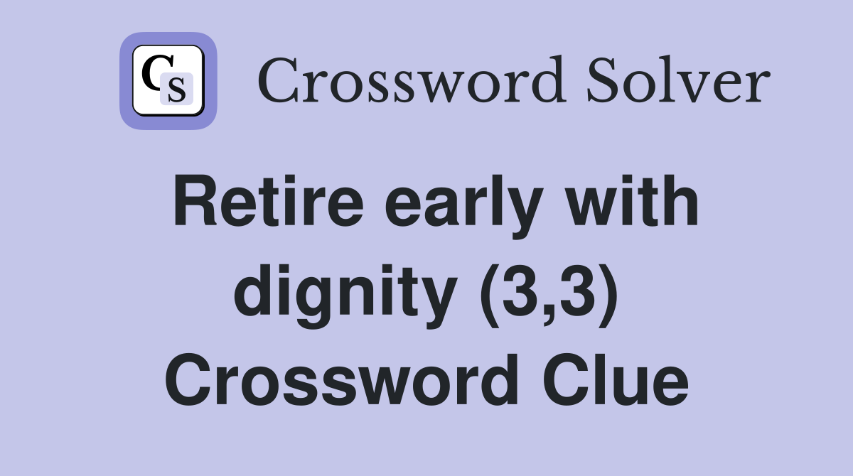 Retire early with dignity (3 3) Crossword Clue Answers Crossword Solver