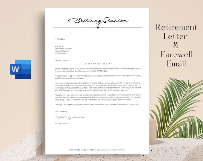 Retirement Letter Example in Microsoft Word Apple Pages Google Docs