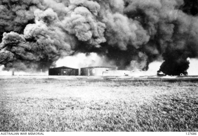 BORNEO 1942 12 08 DURING THE RETREAT CLOUDS OF BLACK SMOKE FROM THE