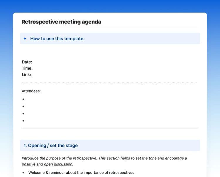 Project Retrospective Meeting Agenda Template Fellow app
