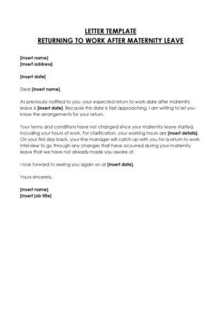 Maternity Leave Return to Work Plan Template Google Docs Word Apple