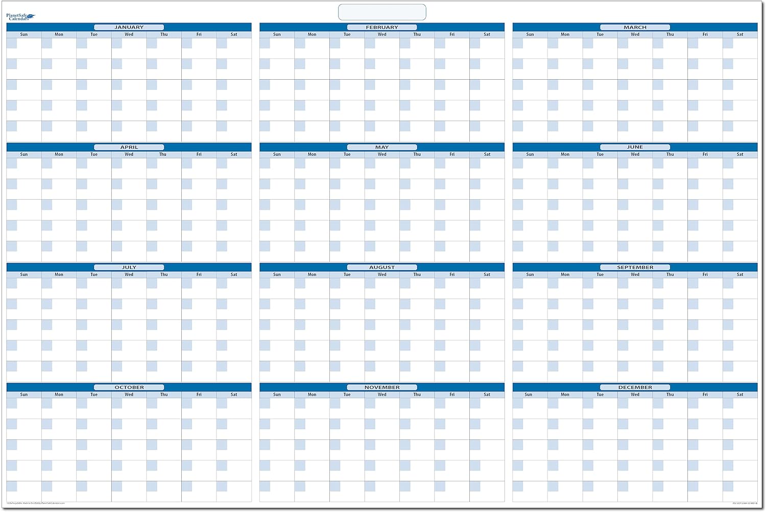 XLarge Yearly Wet Dry Erase Blank Reusable Undated Wall Calendar