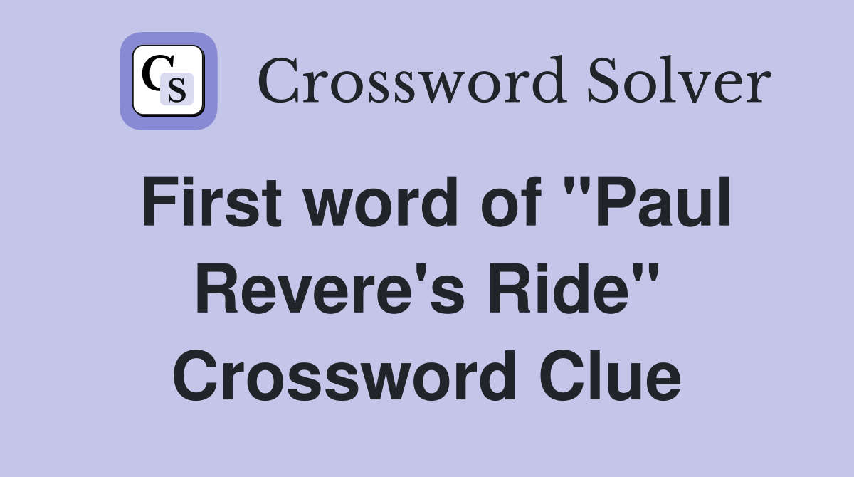 First word of quot Paul Revere #39 s Ride quot Crossword Clue Answers Crossword