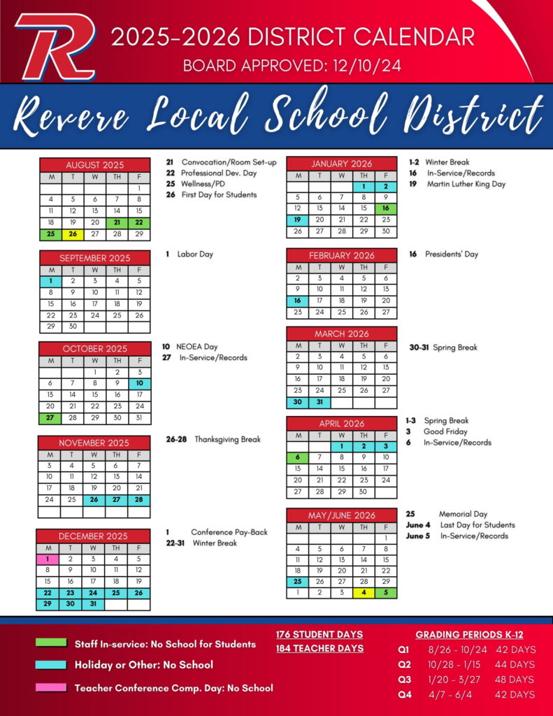 Revere Local School District 25 26 Calendar Revised PDF EduCounty