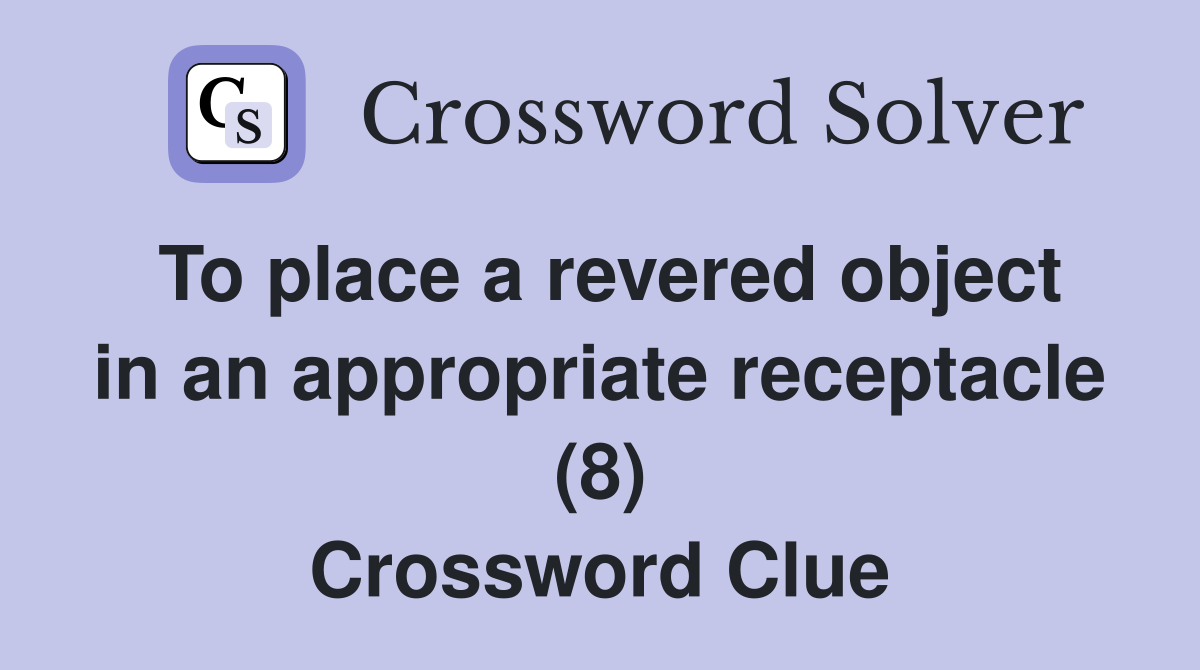 To place a revered object in an appropriate receptacle (8) Crossword