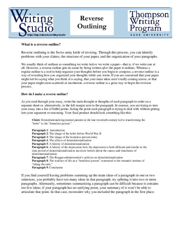 Reverse Outline Revision Tool e Writing Center The Samuel Rudin