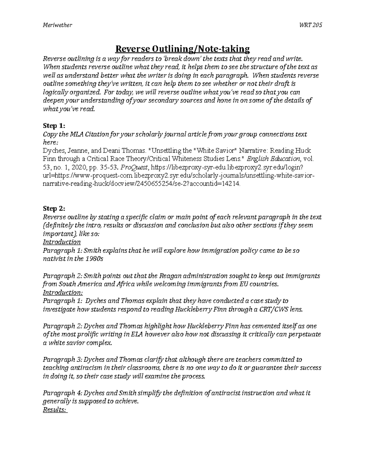 Reverse outlining Note Taking Meriwether WRT 205 Reverse Reverse