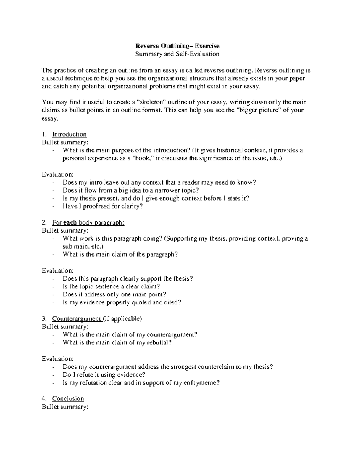Reverse Outlining Exercise PDF