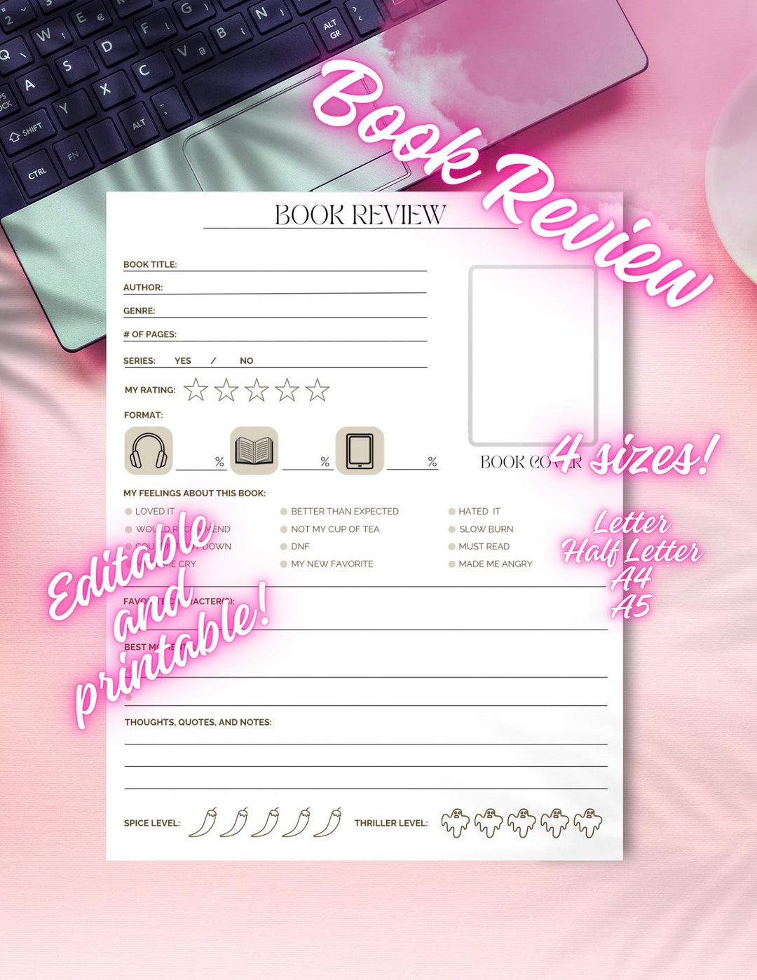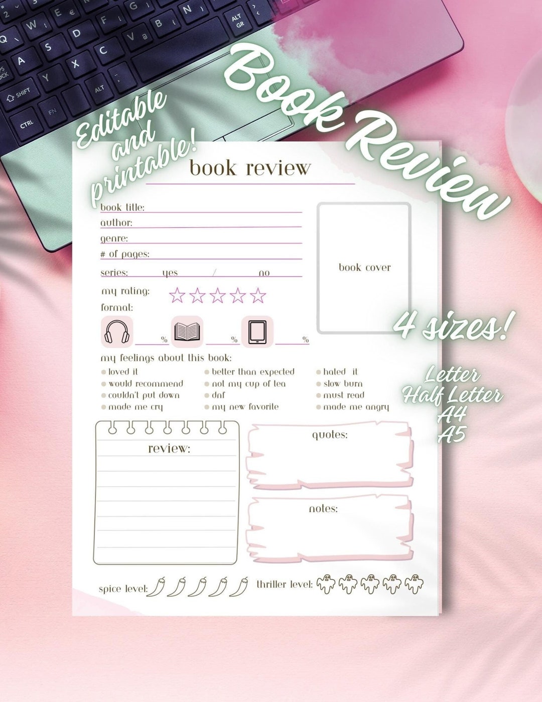 Book Review Page Template Editable Printable Customizable 4 Sizes