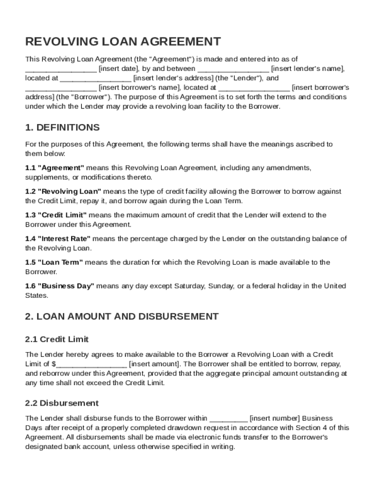 Revolving Loan Agreement Template: Fill out sign online DocHub