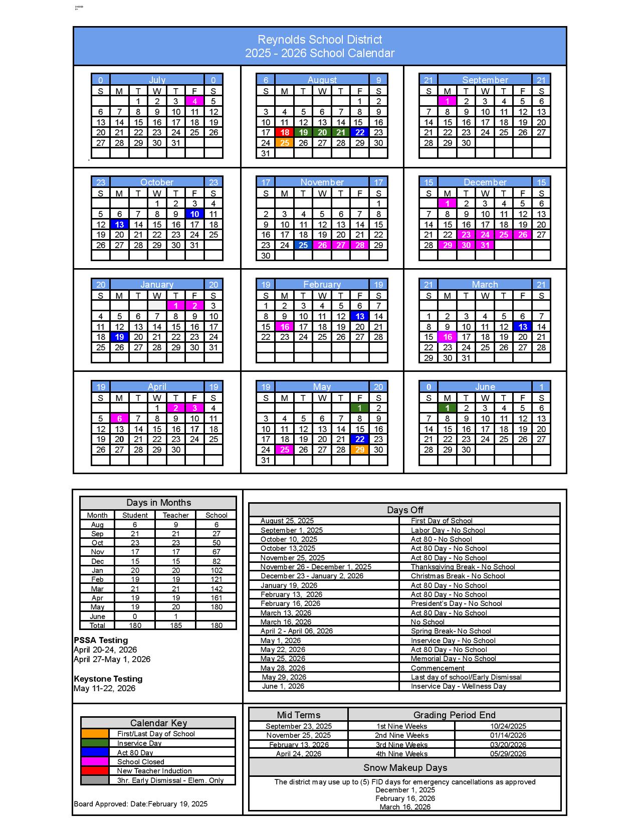 Reynolds School District Calendar 2025 2026 Pennsylvania