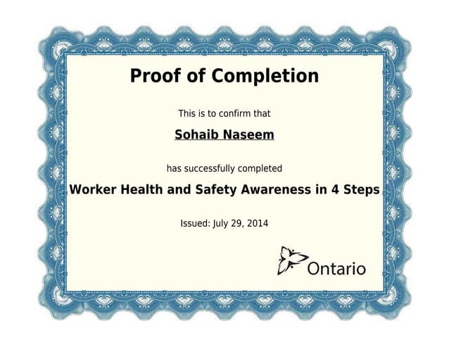Worker Health and Safety Awareness Certificate PDF Medical Health