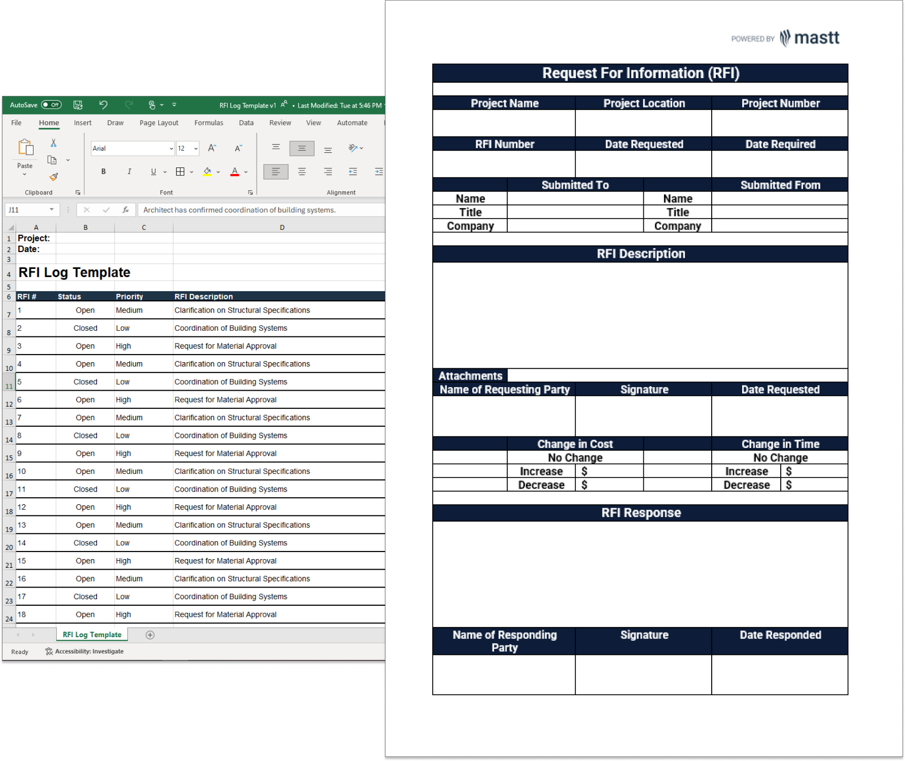 Free Construction RFI Template (Word Excel PDF) Excel TMP