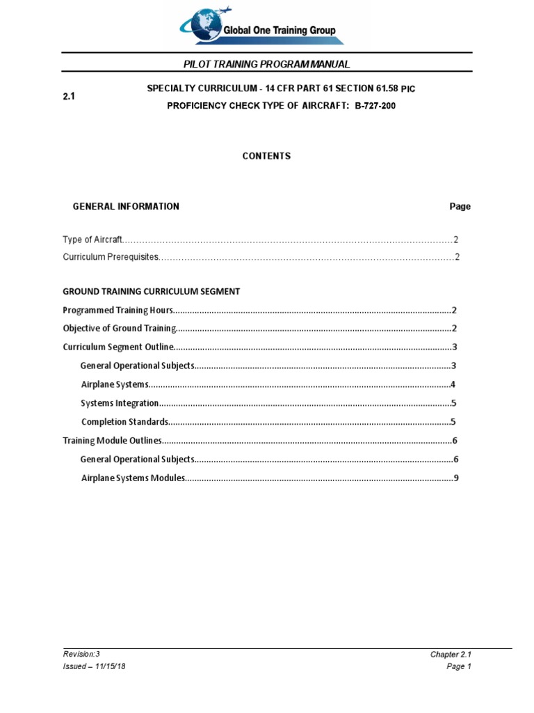 Pilot Training Program Manual 1: Specialty Curriculum 14 CFR Part 61