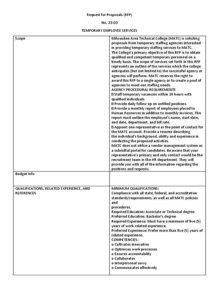 Temporary Staffing Services El Paso RFP Review PDF Hospital