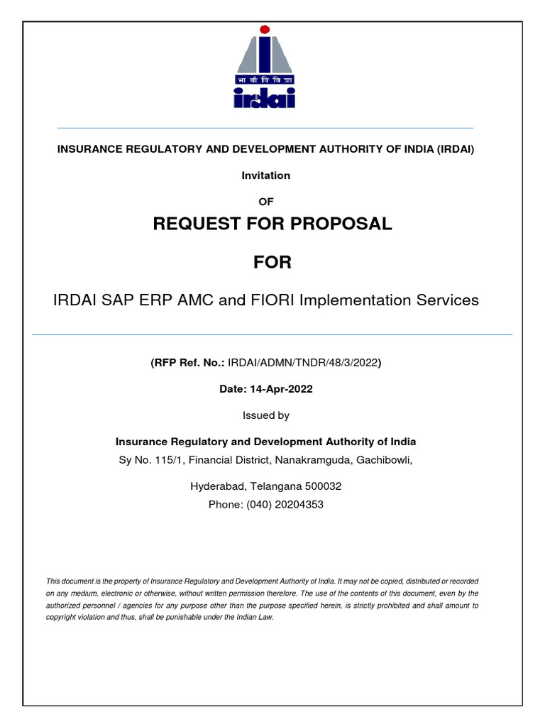 RFP For IRDAI SAP ERP AMC and FIORI Implementation Services PDF