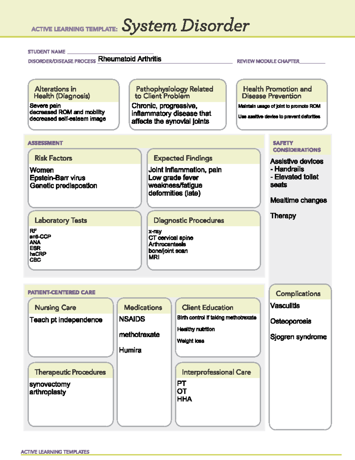 Rheumatoid Arthritis Concept Map ACTIVE LEARNING TEMPLATES System