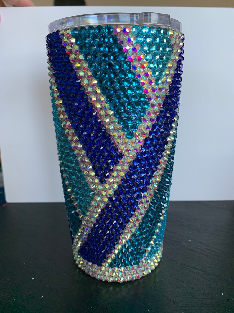 20oz Rhinestone Tumbler Double Wall Stainless Steel Cup AB Royal Blue