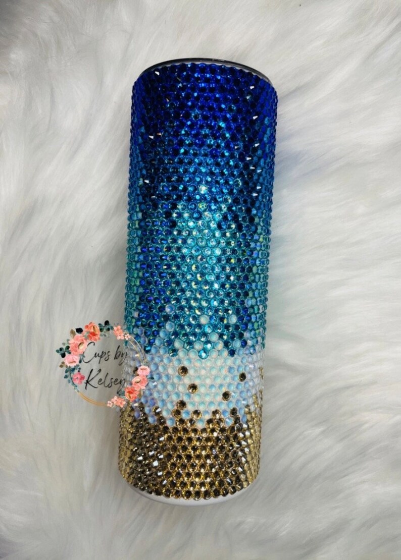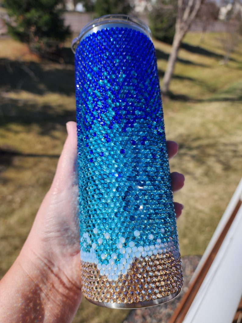 Beach Themed Rhinestone Tumbler 20oz Gift Drinkware Sparkly Unique