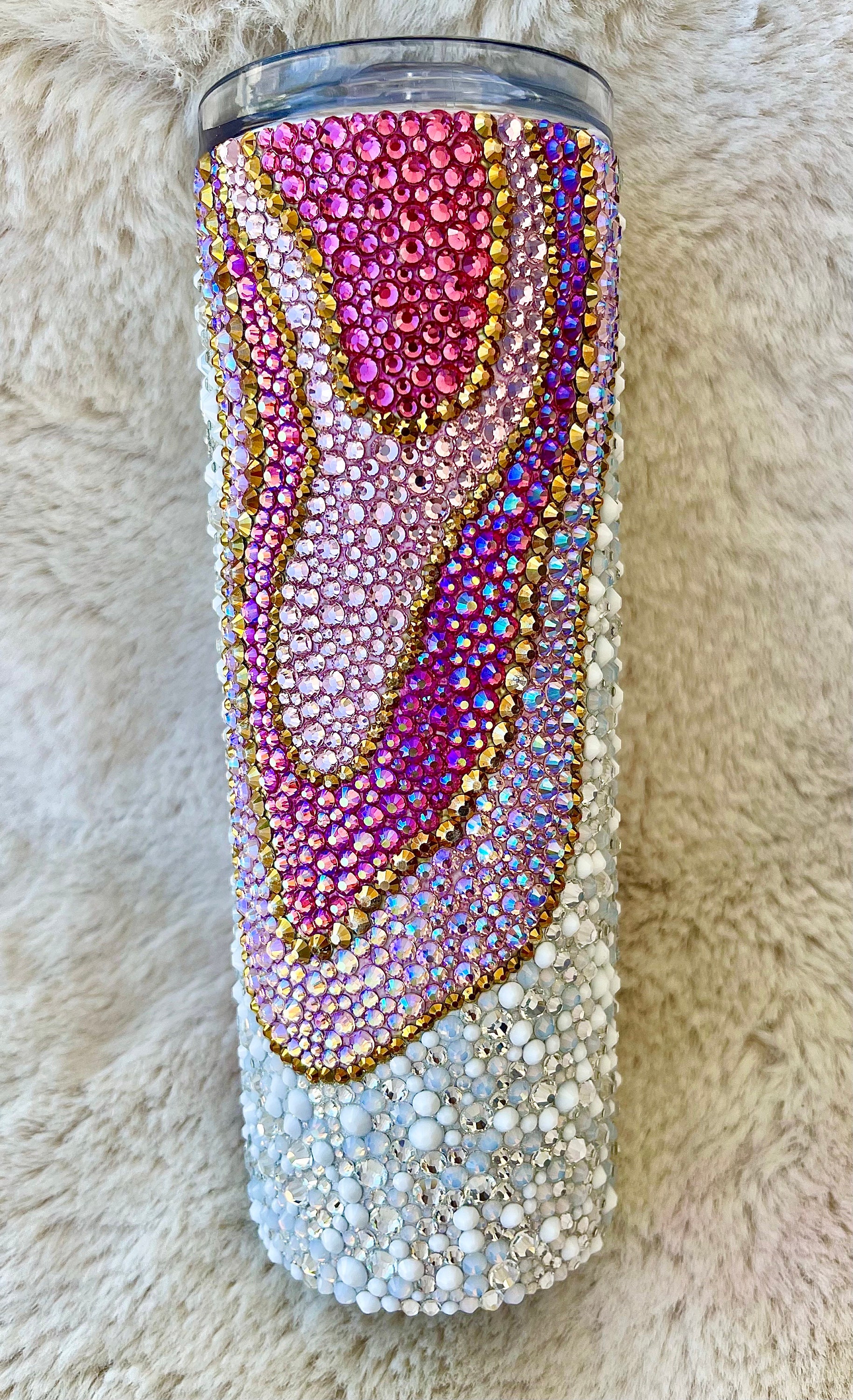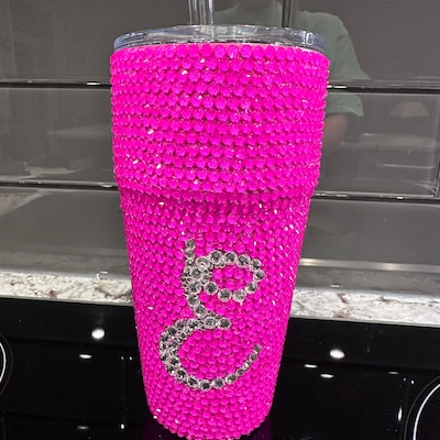 Custom Bedazzled Rhinestone Tumbler Cups Pink Pink rhinestones
