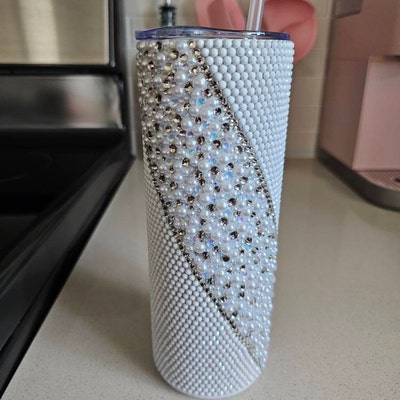 White Rhinestone and Pearl Bling Tumbler Gift for Her Handmade Gift